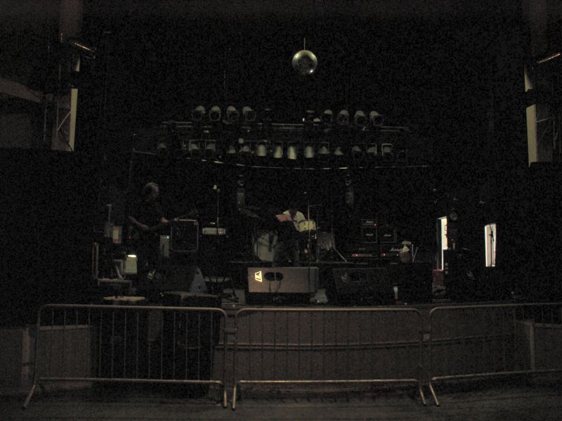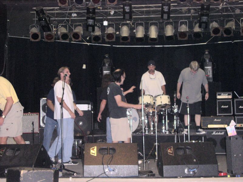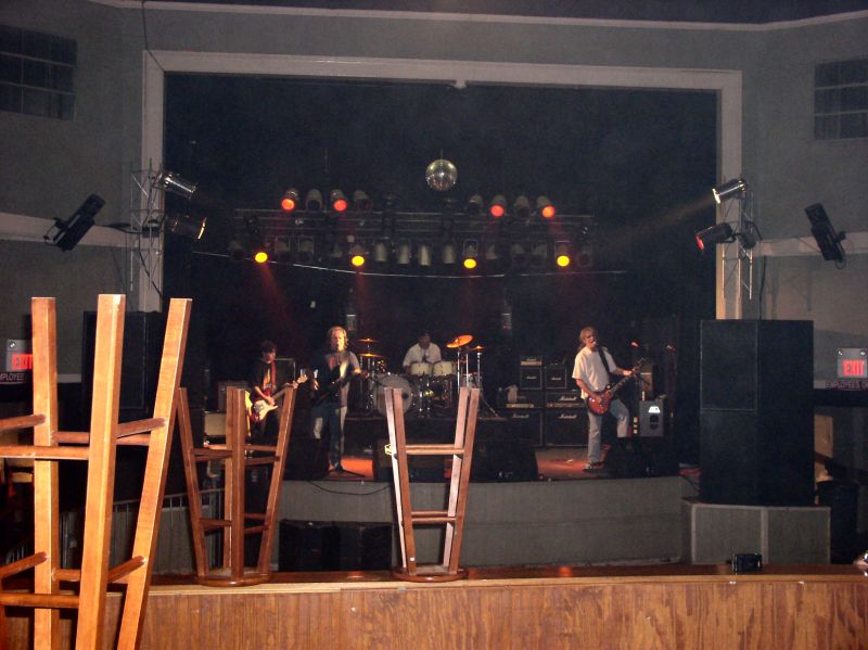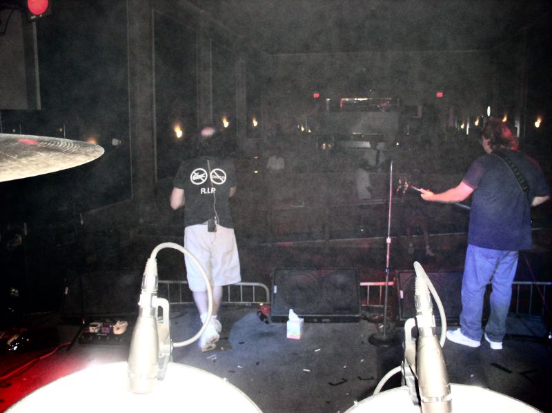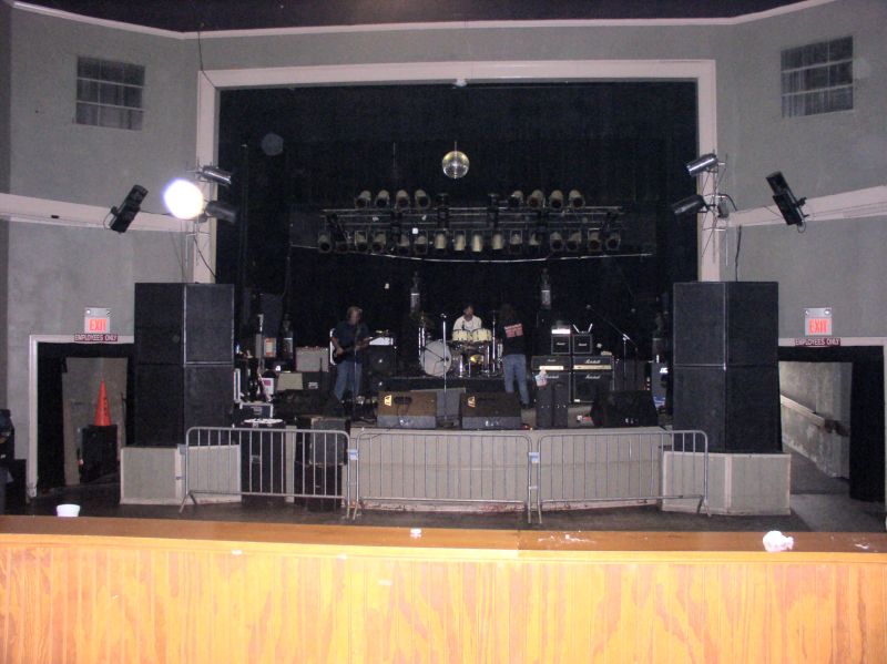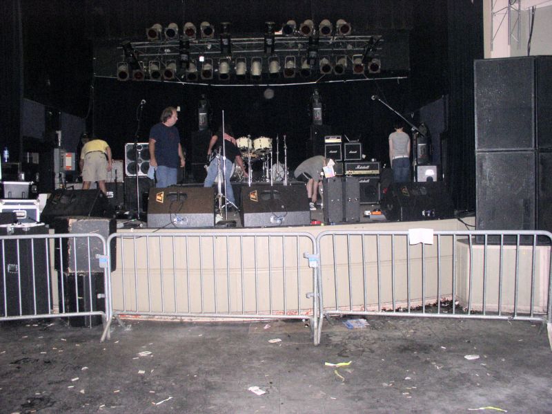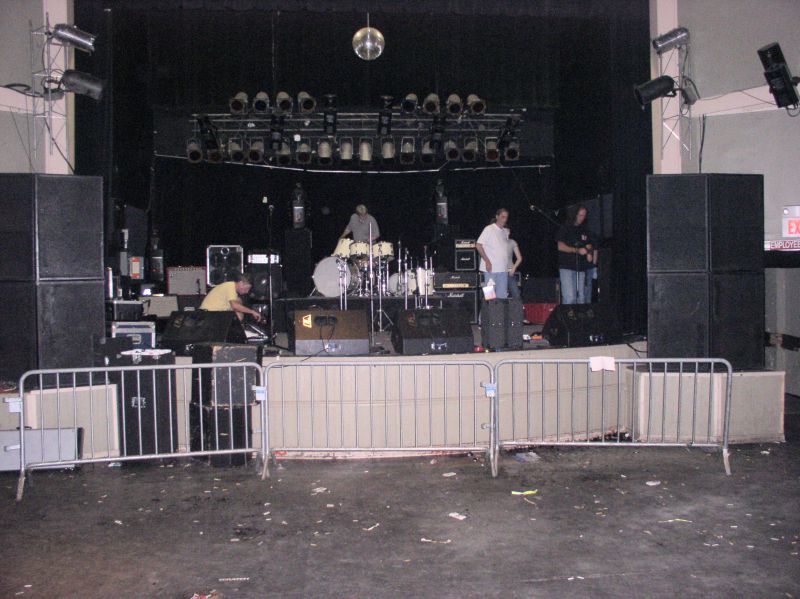 | The Lincoln opened at 1:00 PM to let us in and get set up for soundcheck and the show. This is an important stepfor some of us, it’s been a lot of years since we’ve played that loud, and for others, they’ve never played at that volume before. It’s different than playing at practice volume or just sitting at home listening to your stereo even if you like the stereo *really* loud. The stage gets set up, guitars get tuned, everything gets mic’ed, then it’s time to turn it up and check it out |