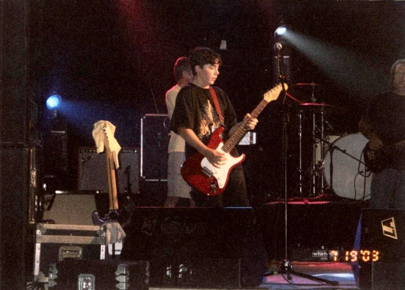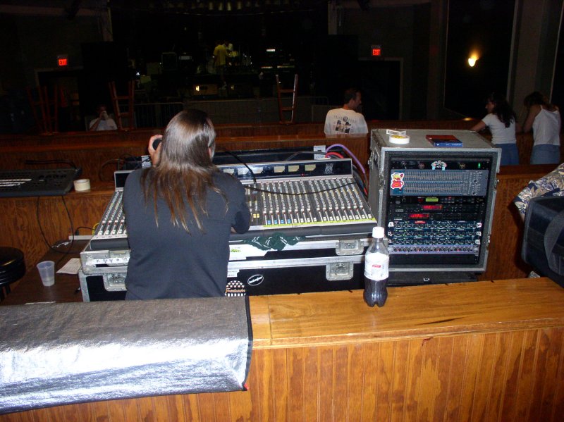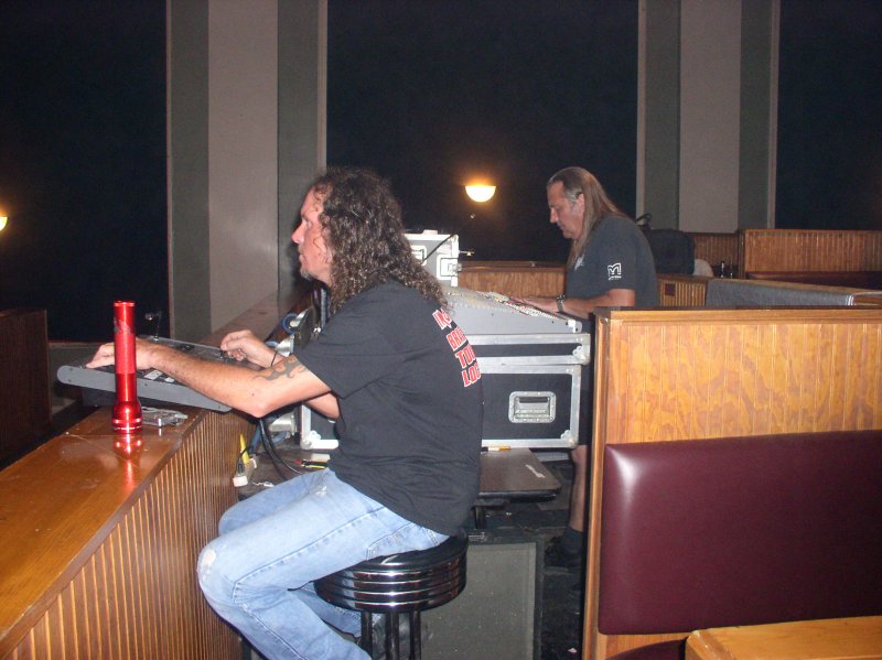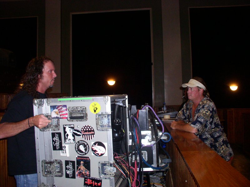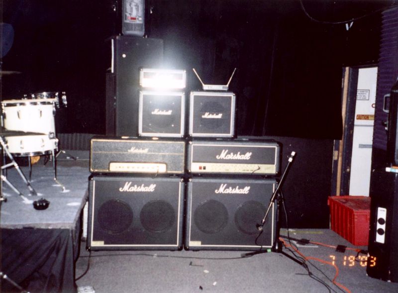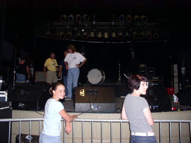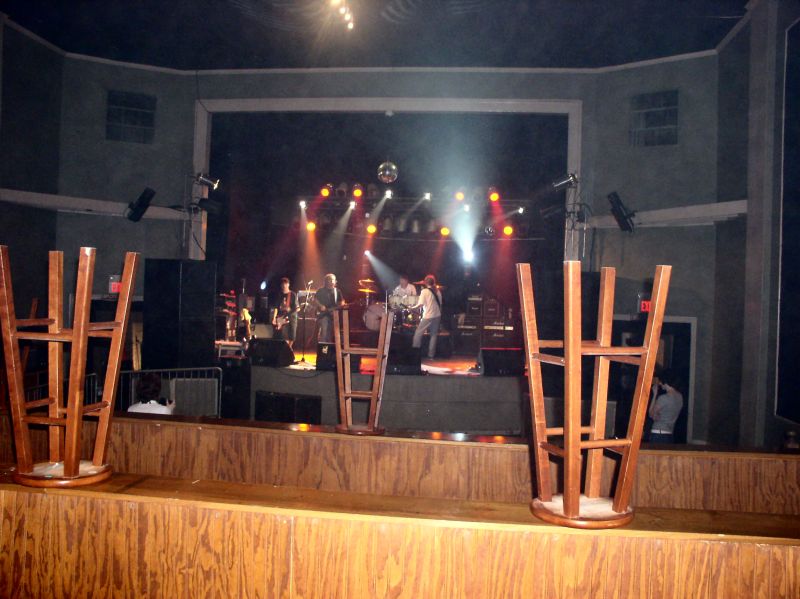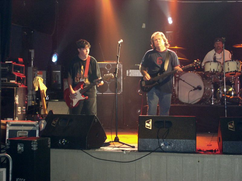 | The Lincoln opened at 1:00 PM to let us in and get set up for soundcheck and the show. This is an important stepfor some of us, it’s been a lot of years since we’ve played that loud, and for others, they’ve never played at that volume before. It’s different than playing at practice volume or just sitting at home listening to your stereo even if you like the stereo *really* loud. The stage gets set up, guitars get tuned, everything gets mic’ed, then it’s time to turn it up and check it out |