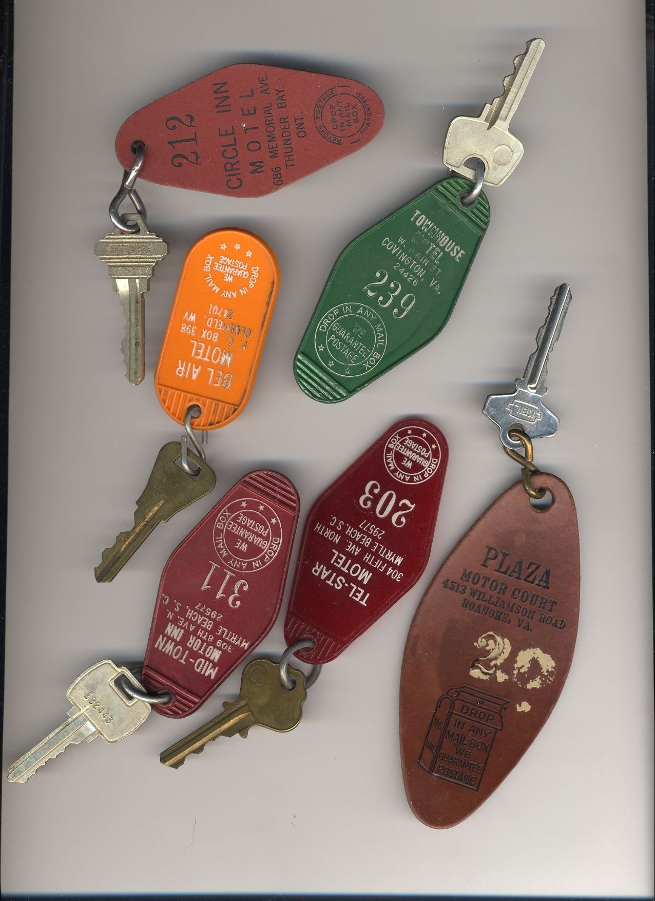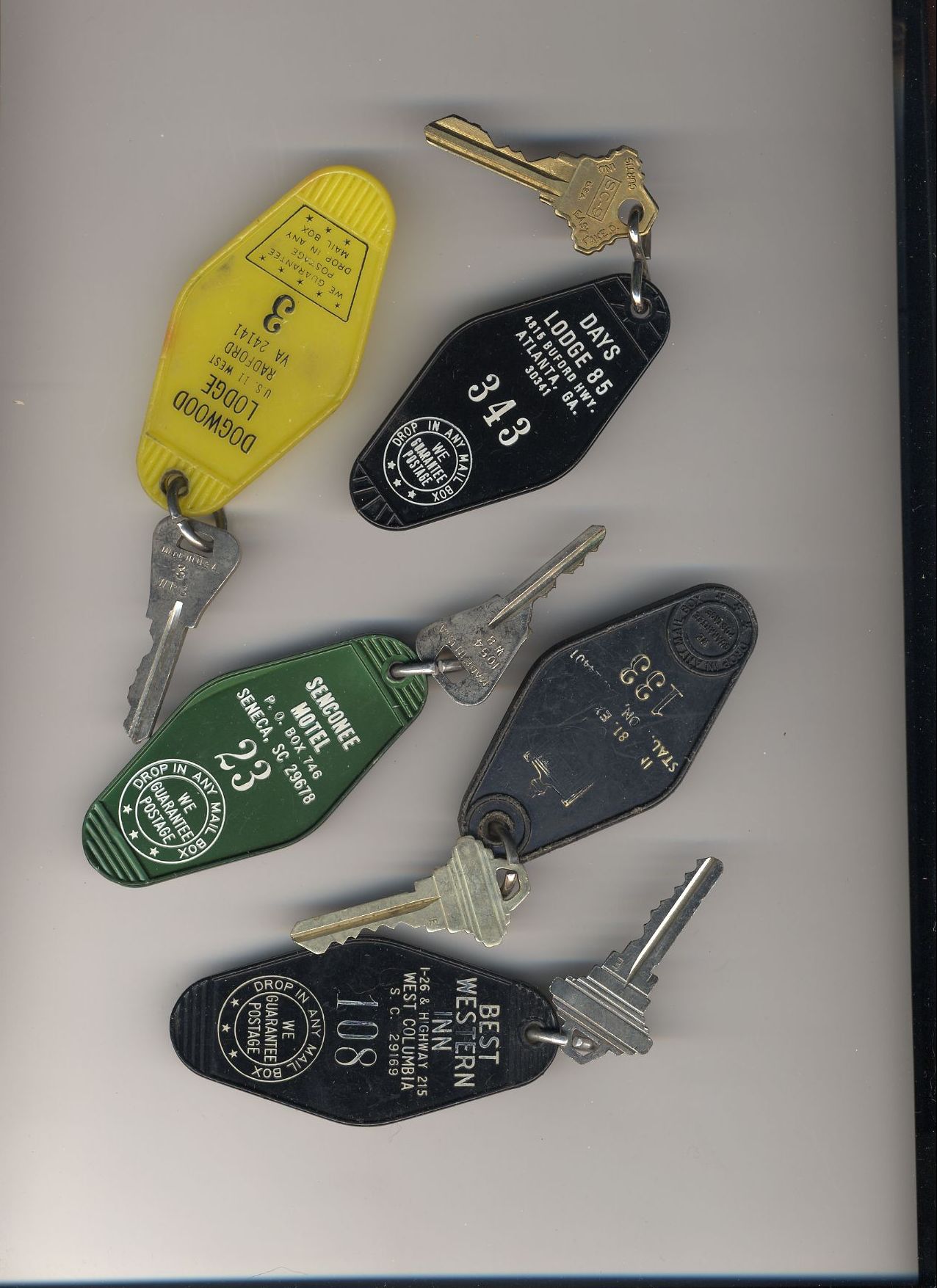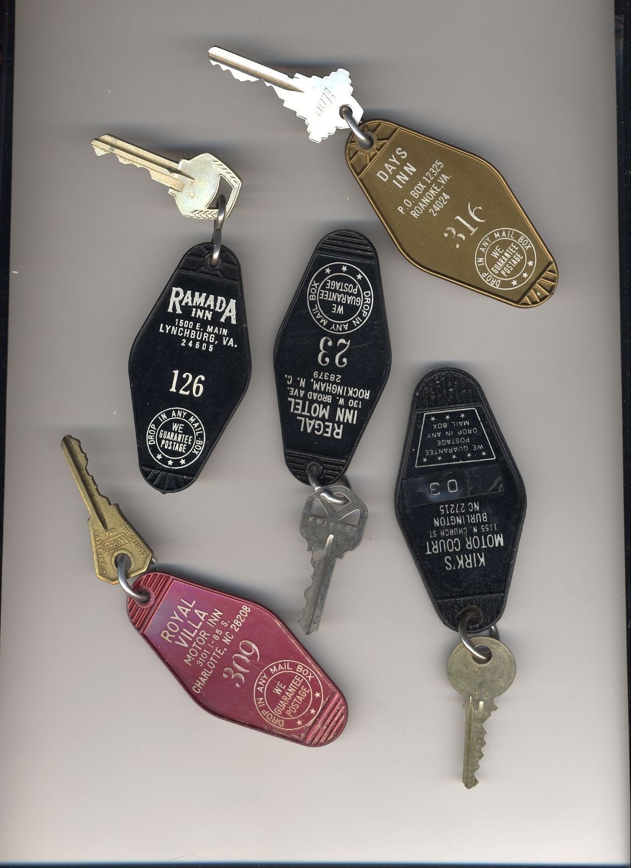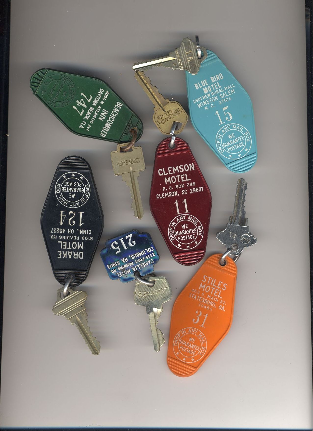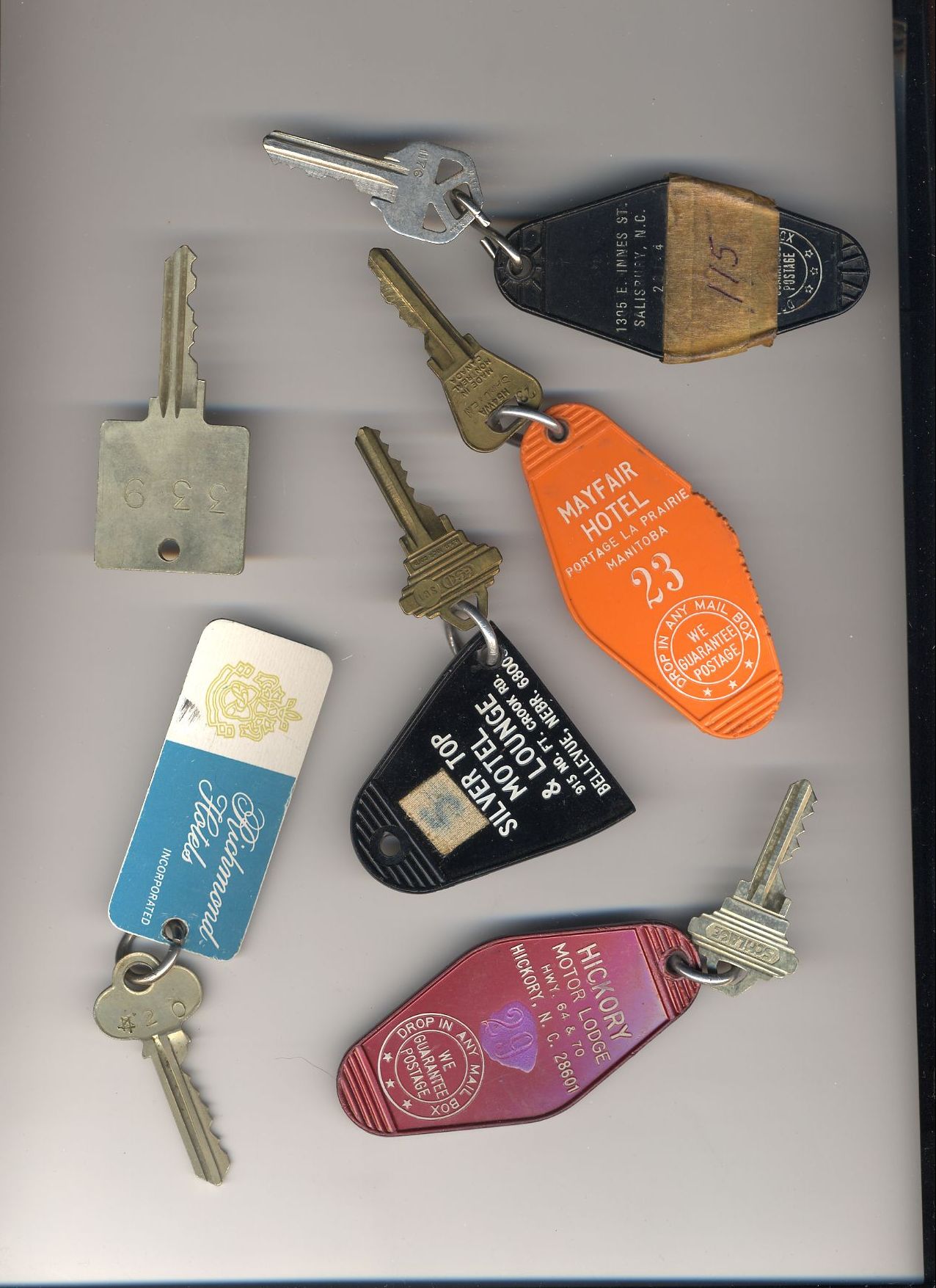Here's a bunch of room keys from various hotels that phoo walked off with