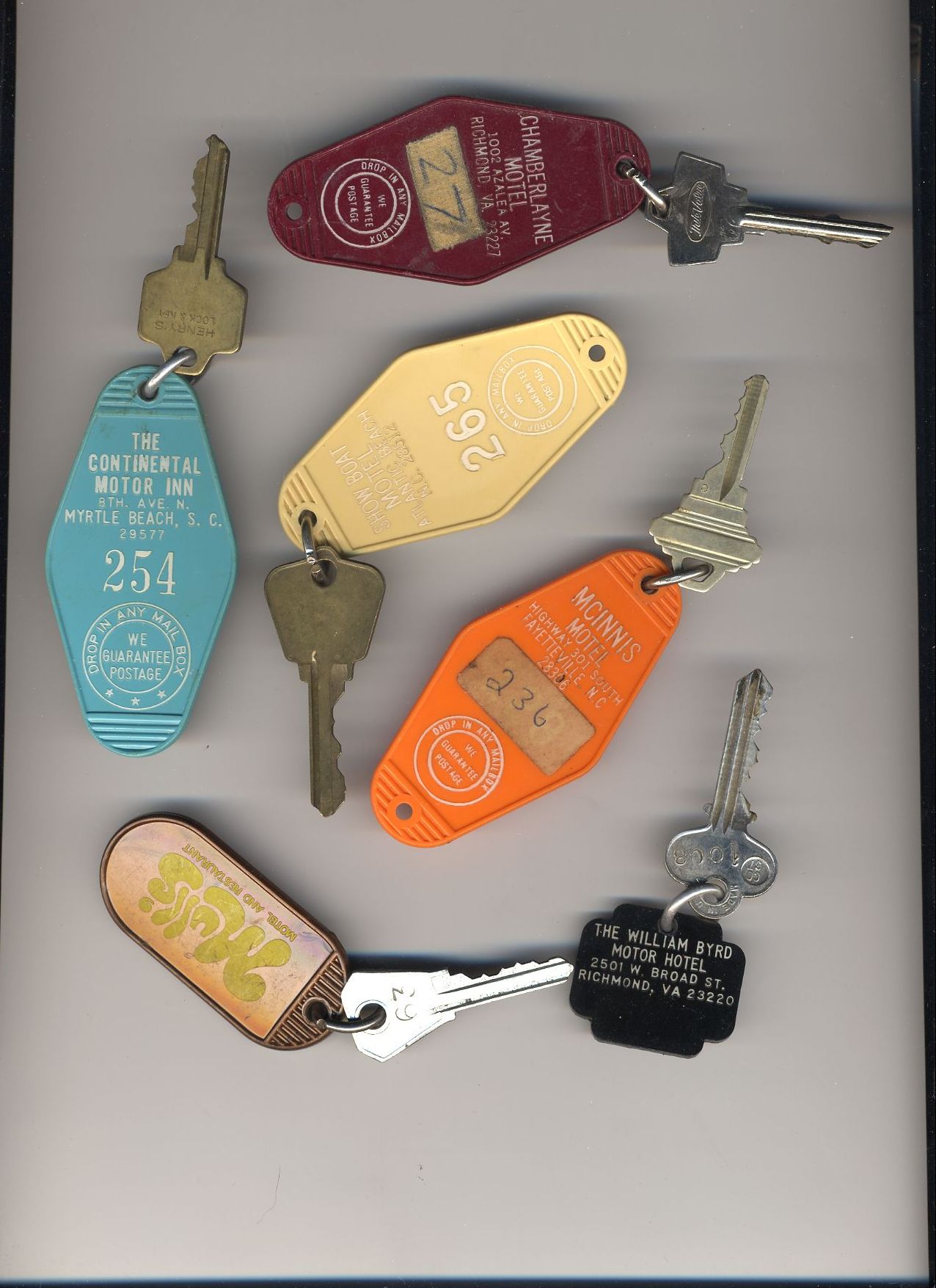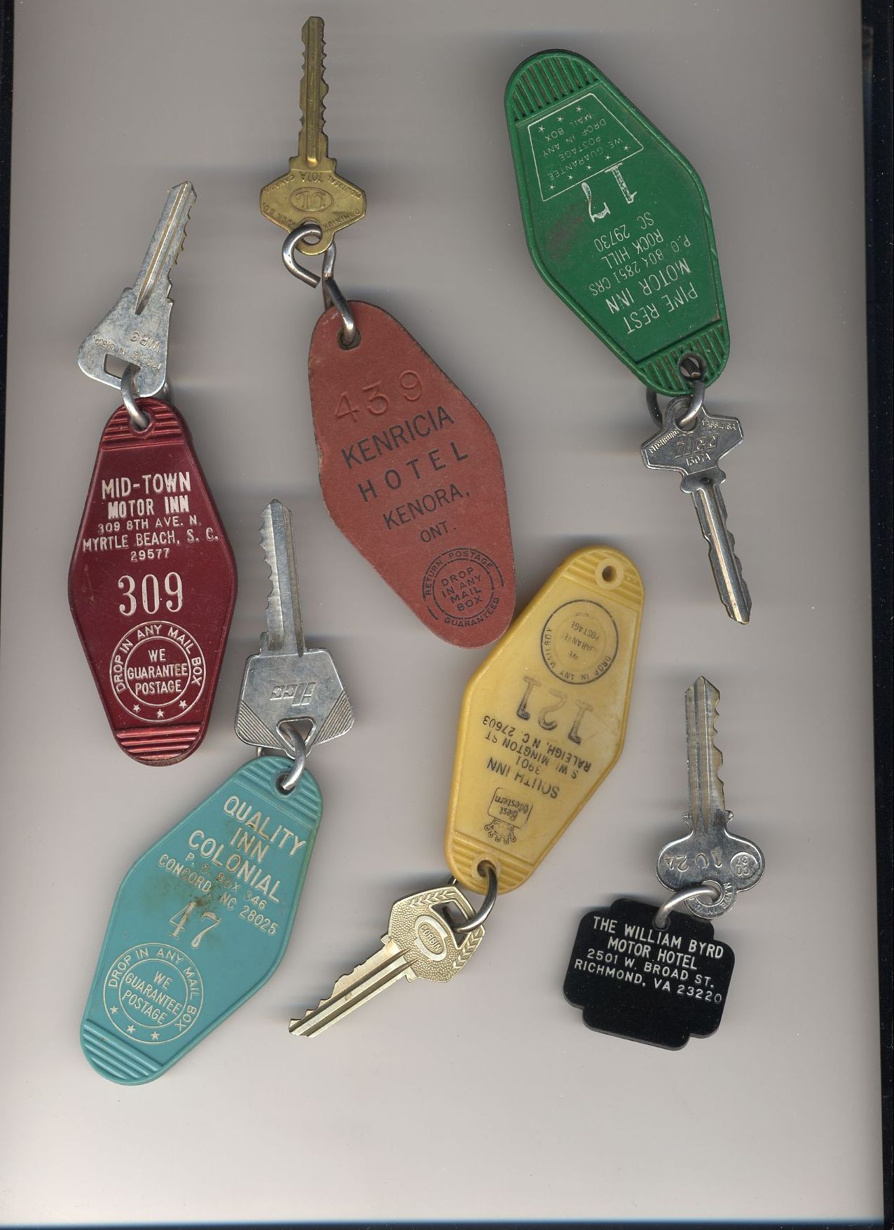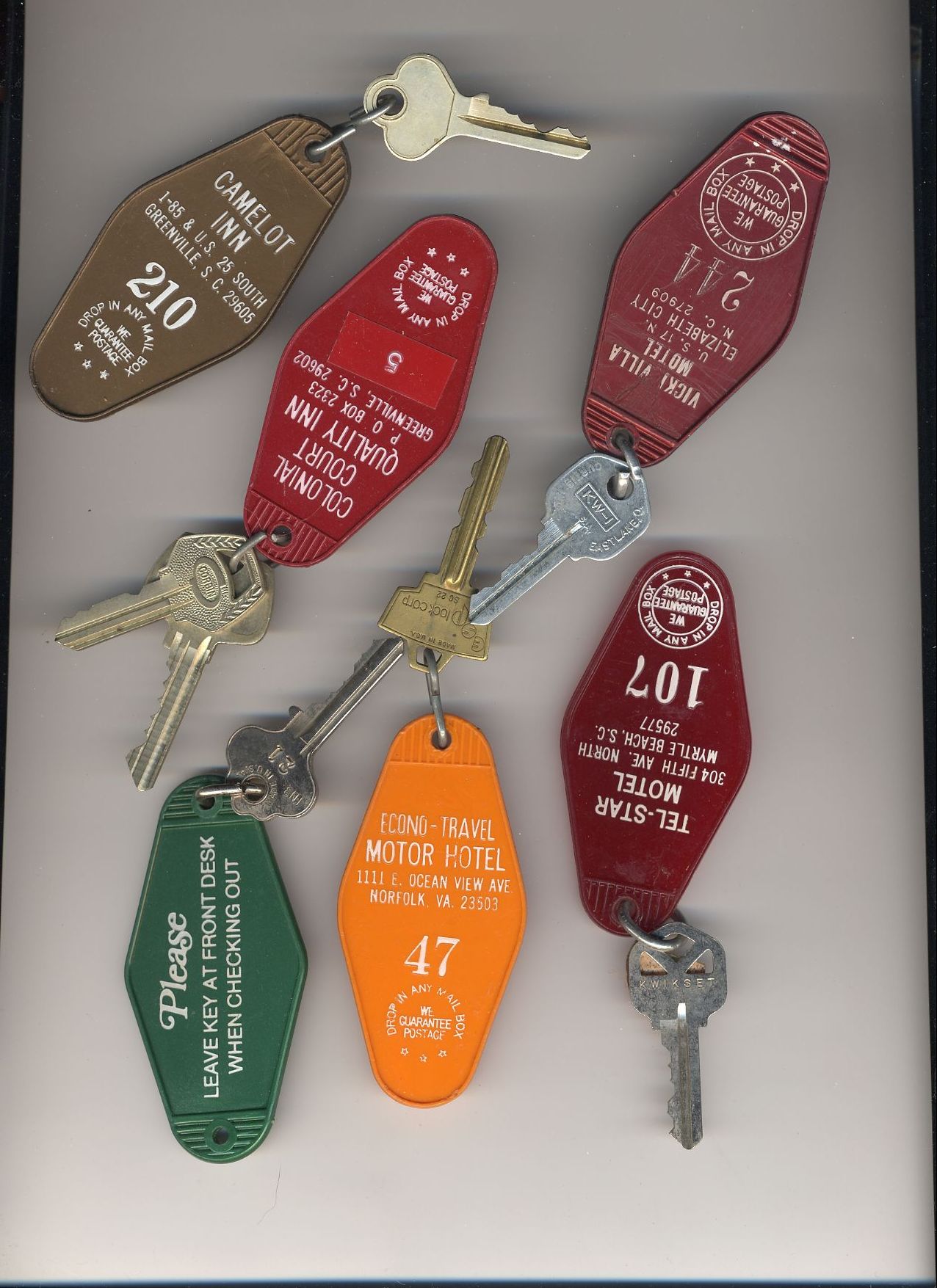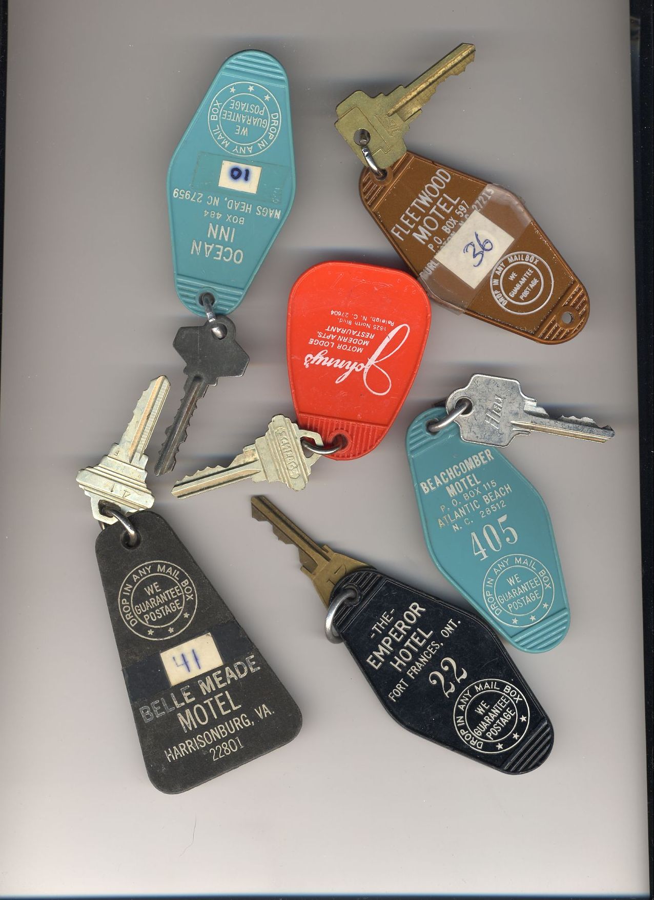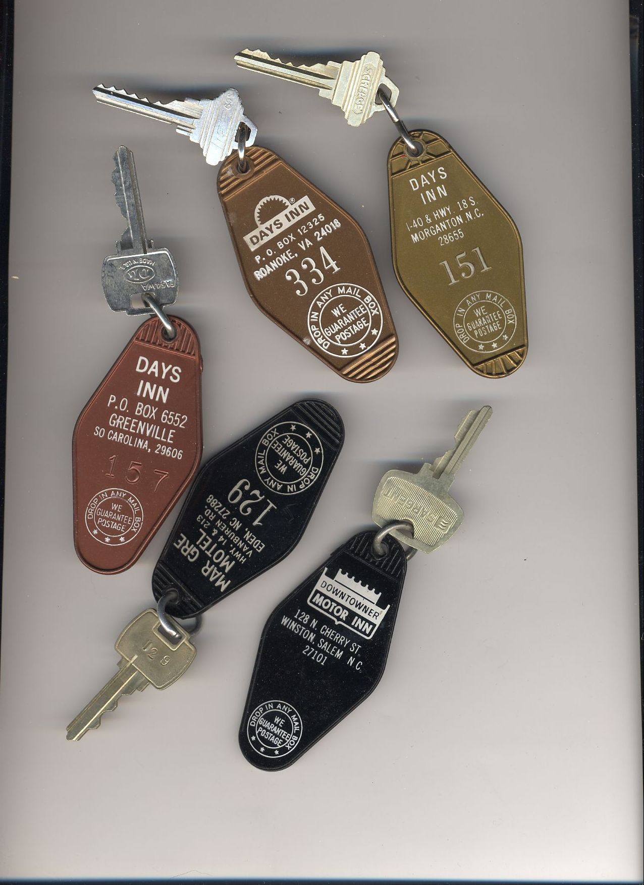 Here's a bunch of room keys from various hotels that phoo walked off with