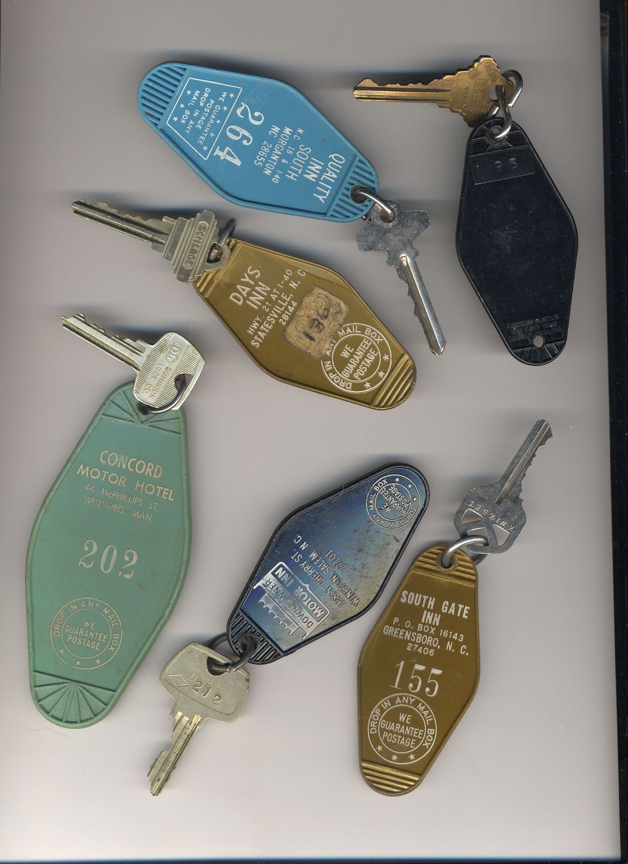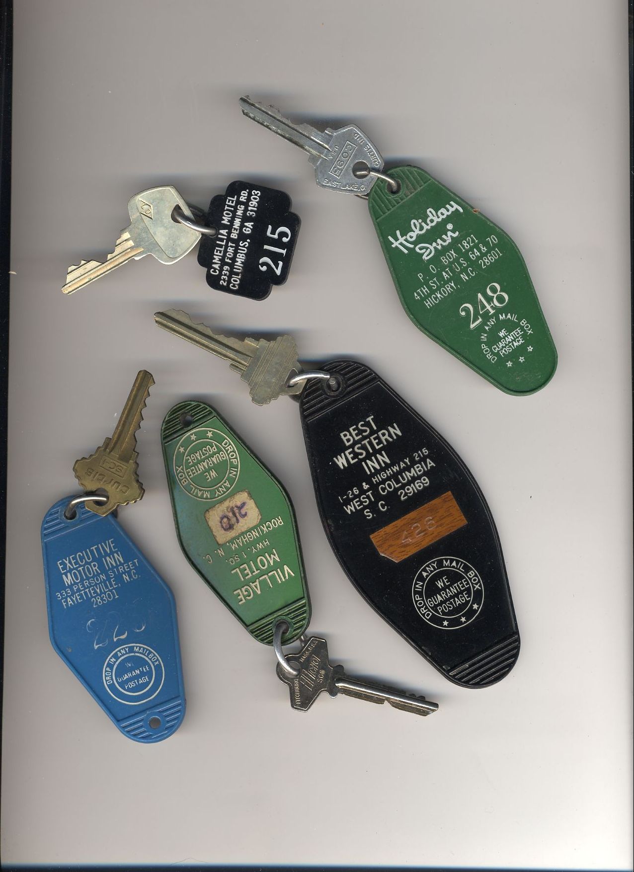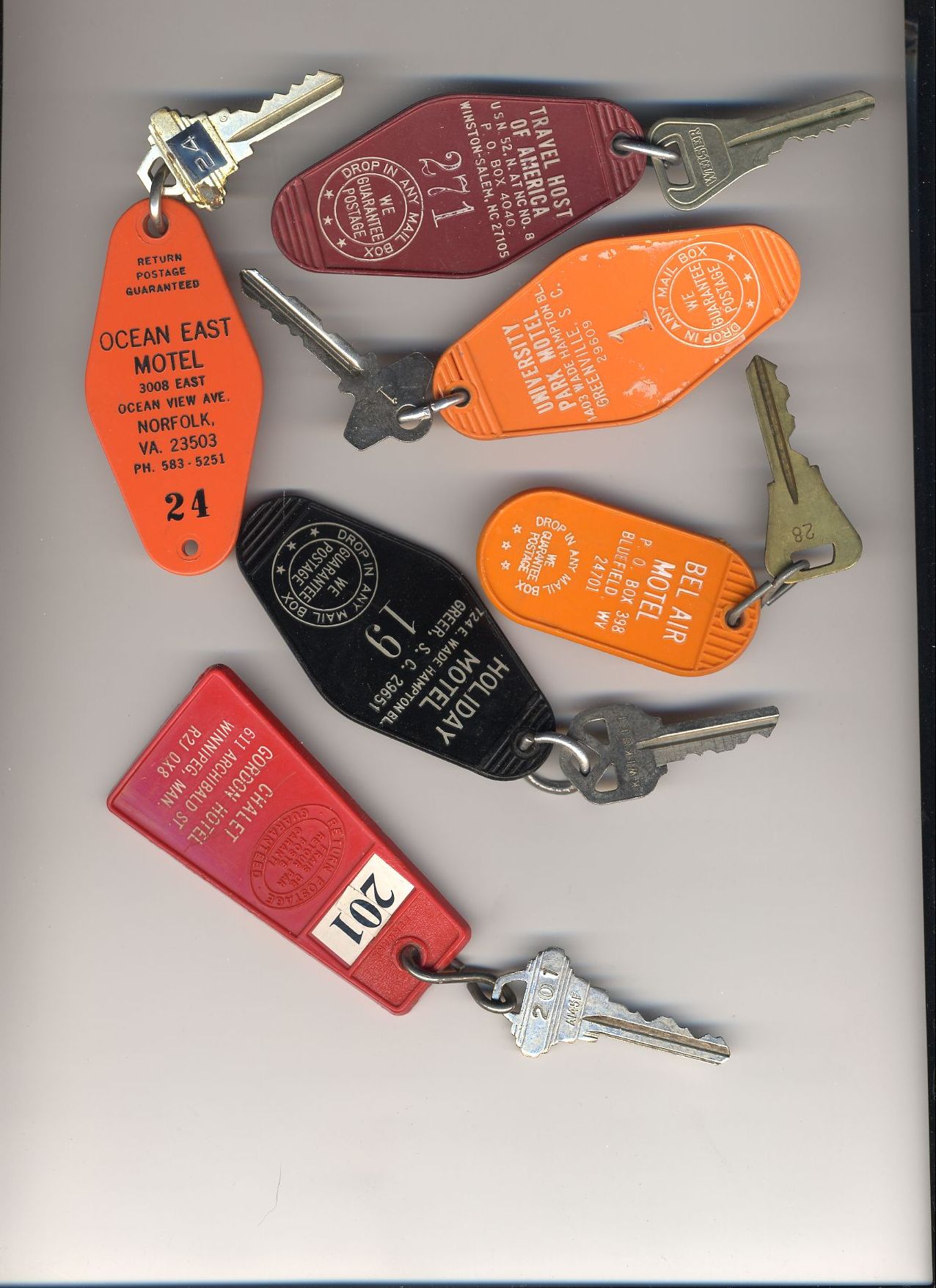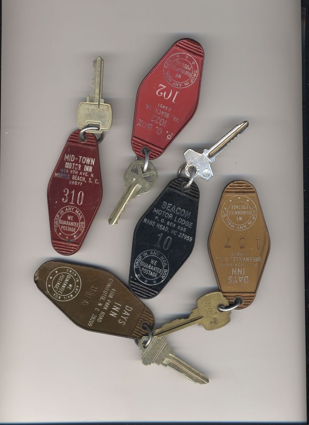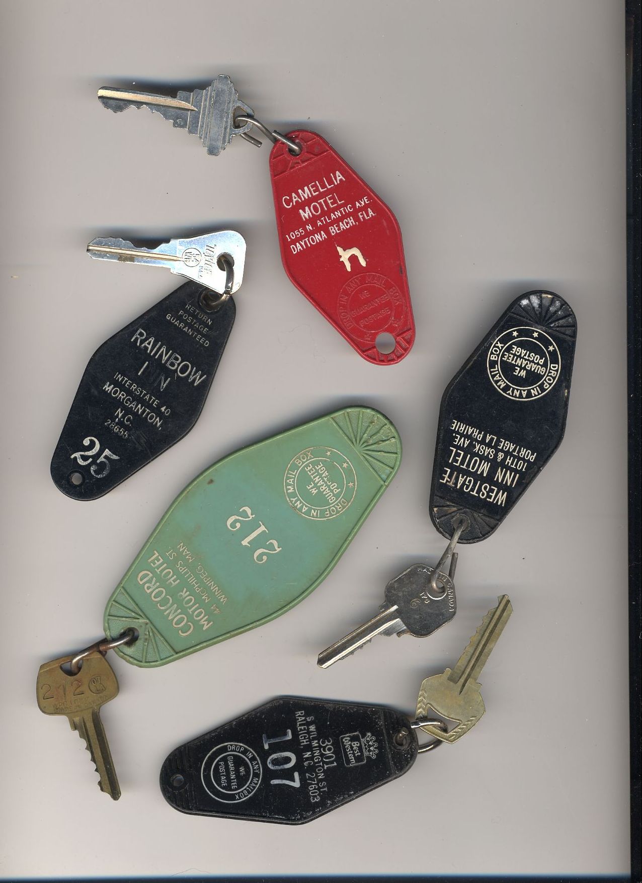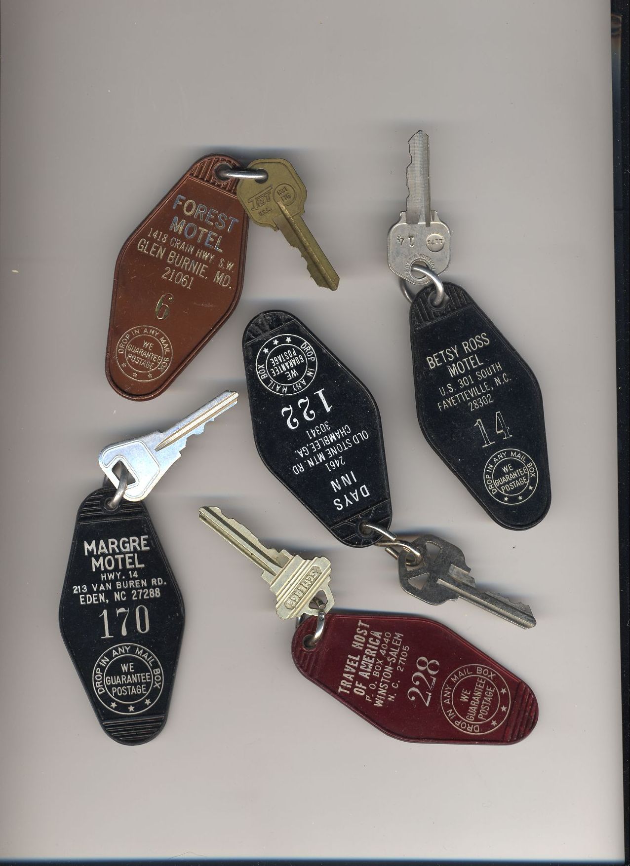 Here's a bunch of room keys from various hotels that phoo walked off with
