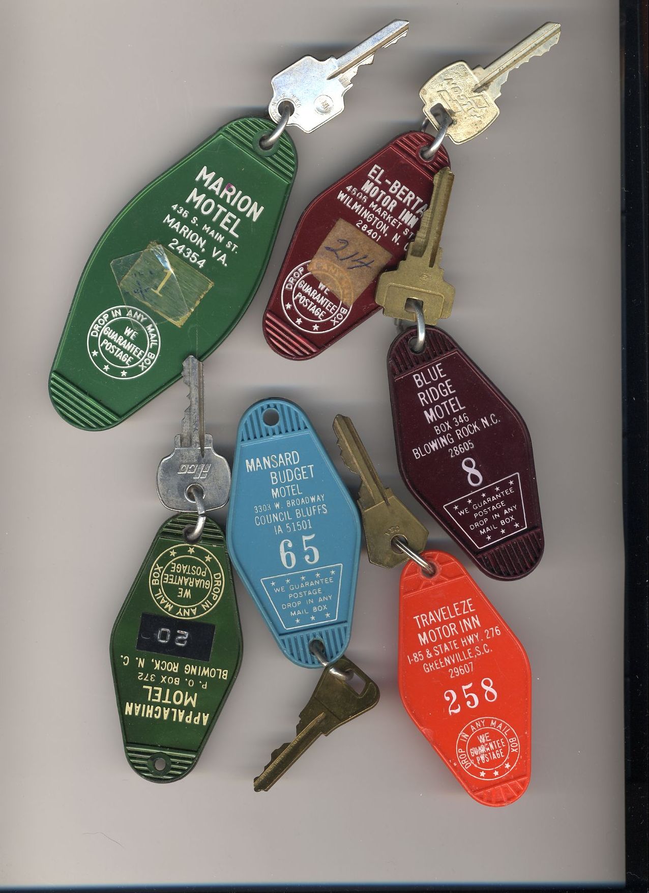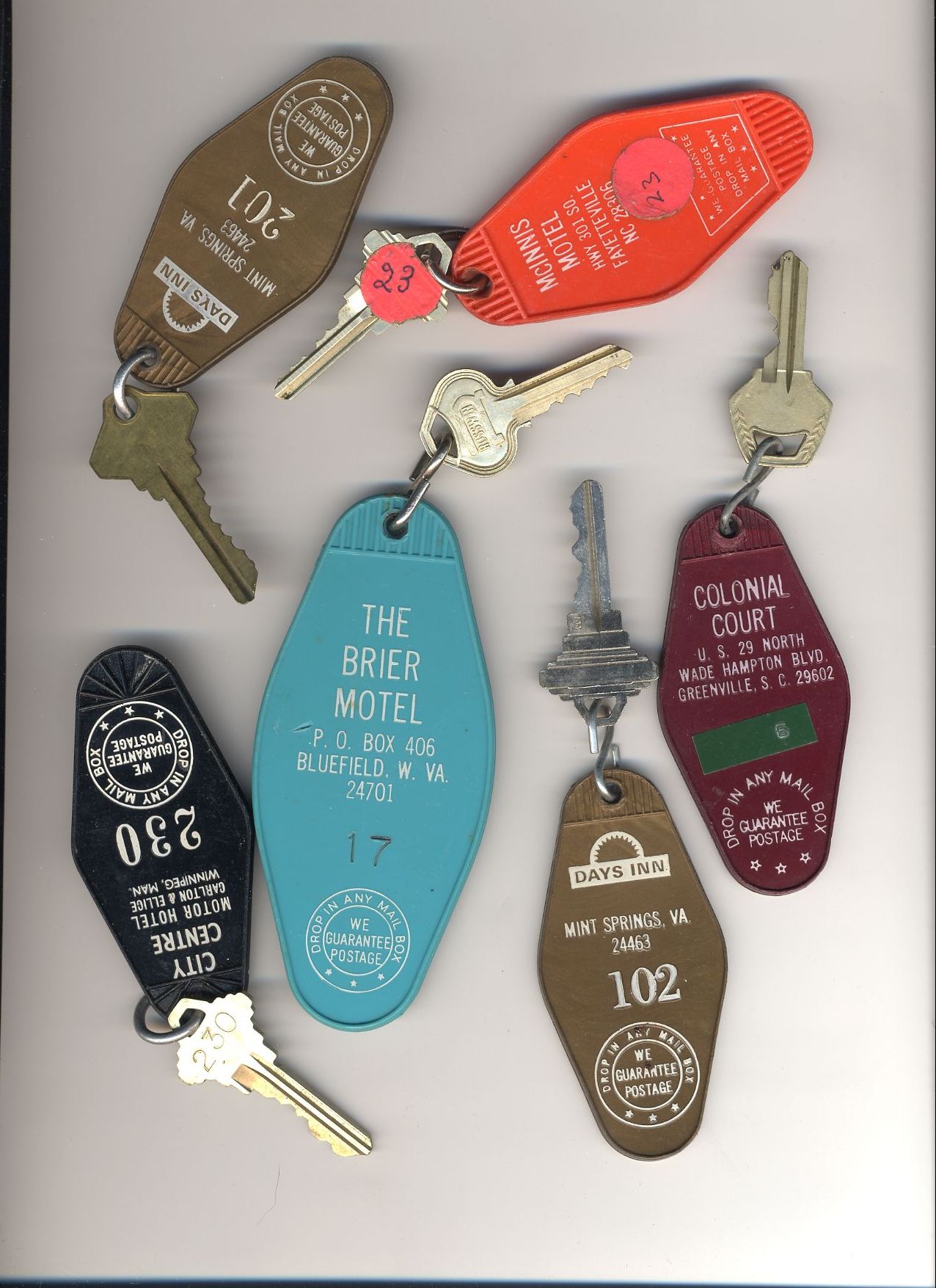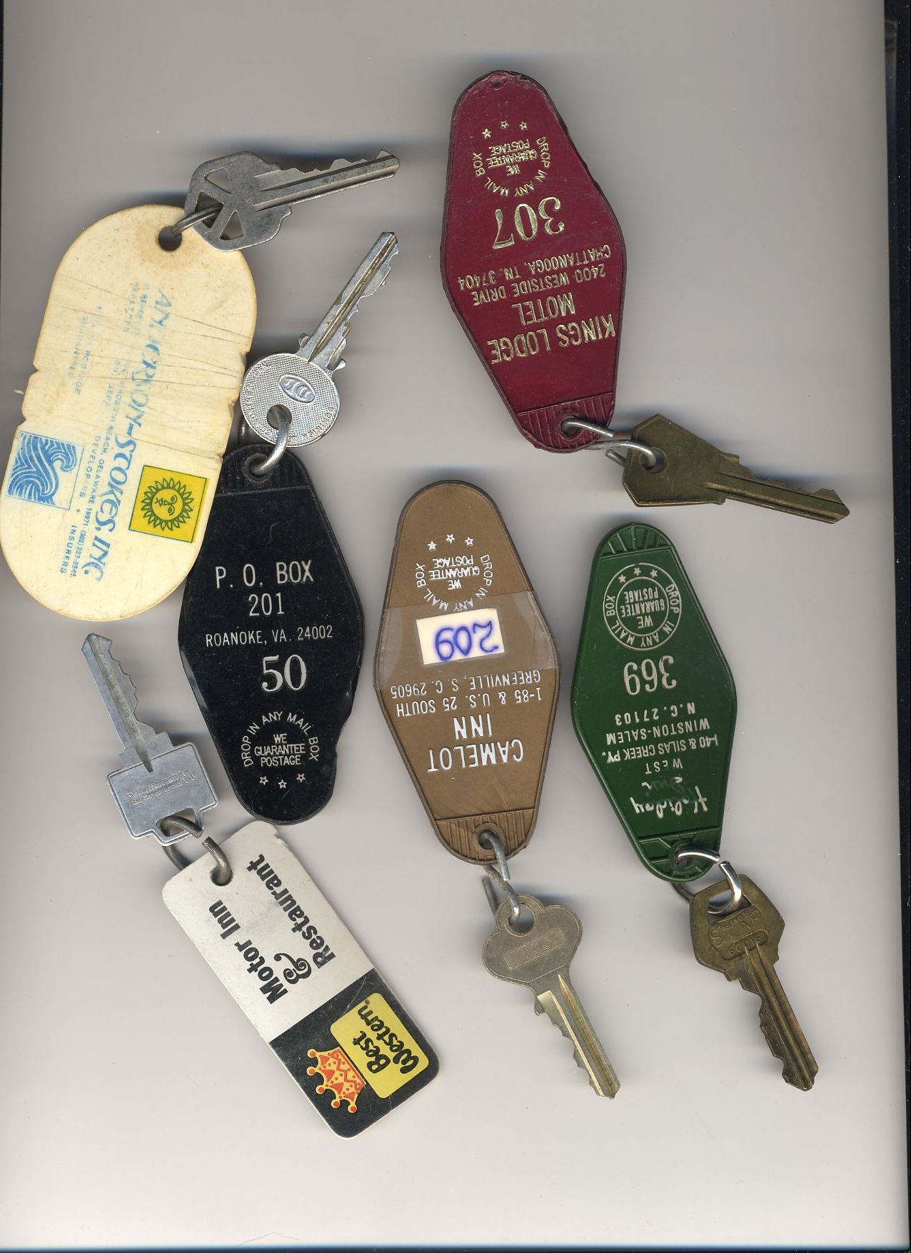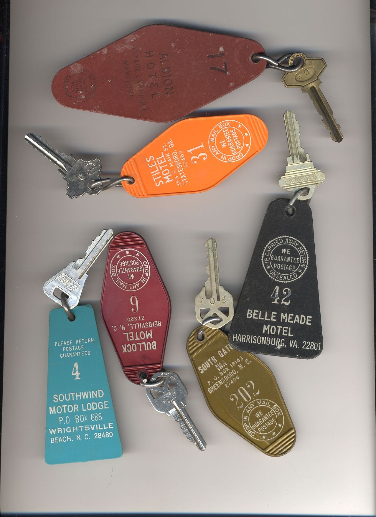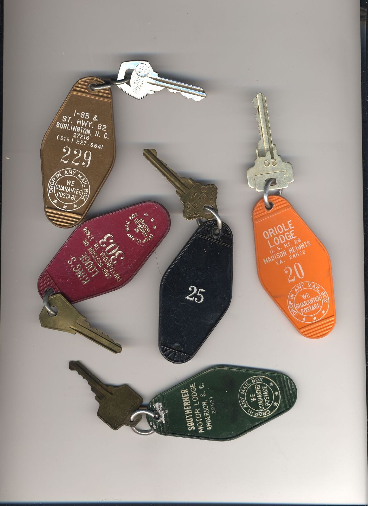 Here's a bunch of room keys from various hotels that phoo walked off with