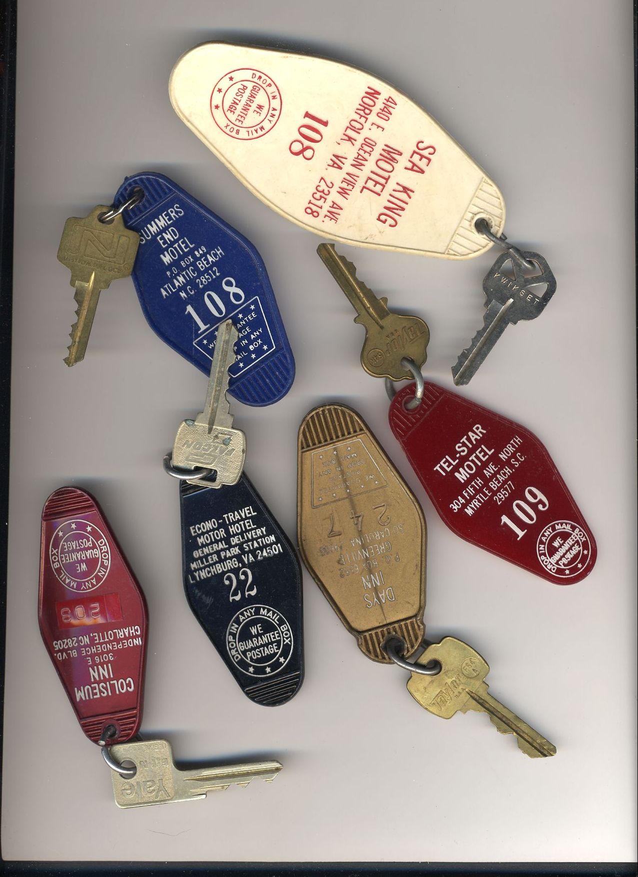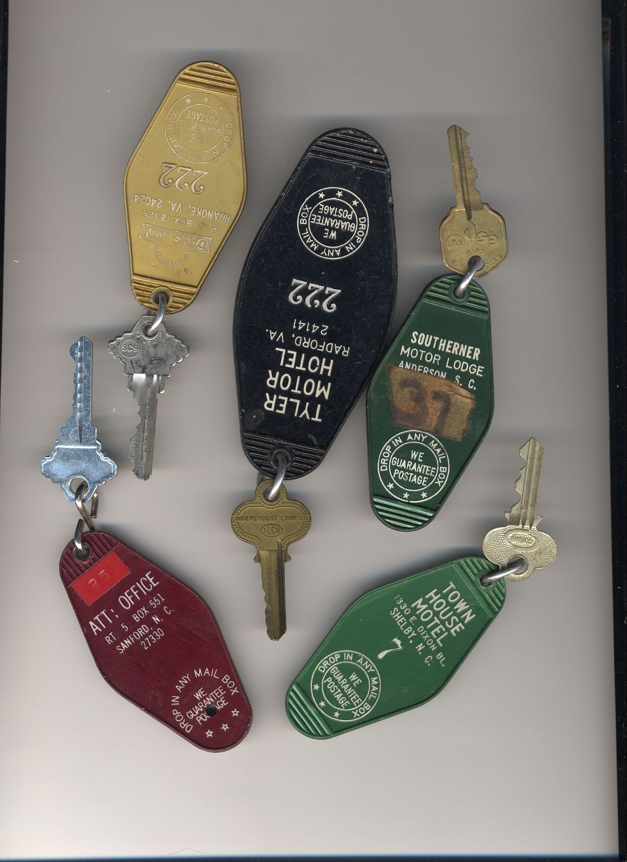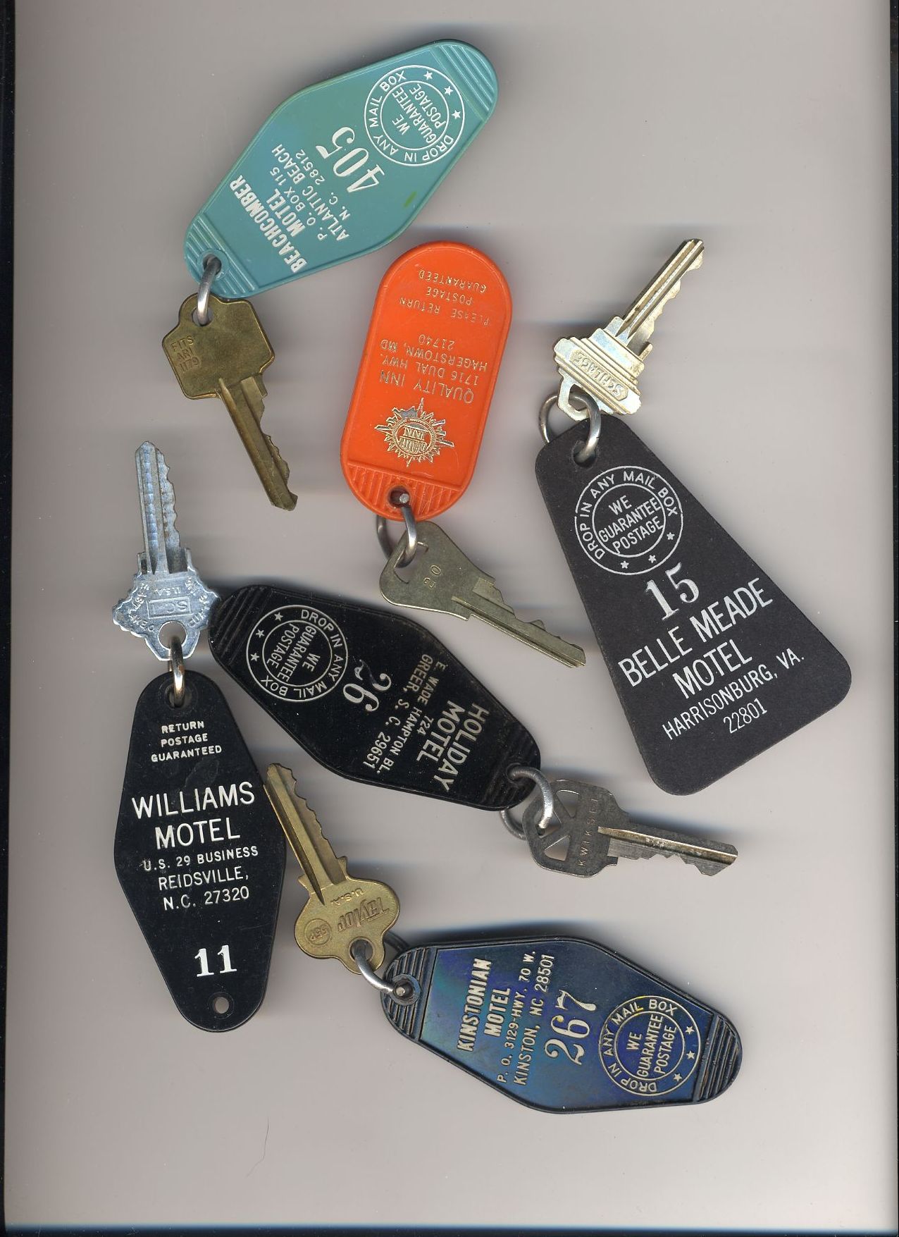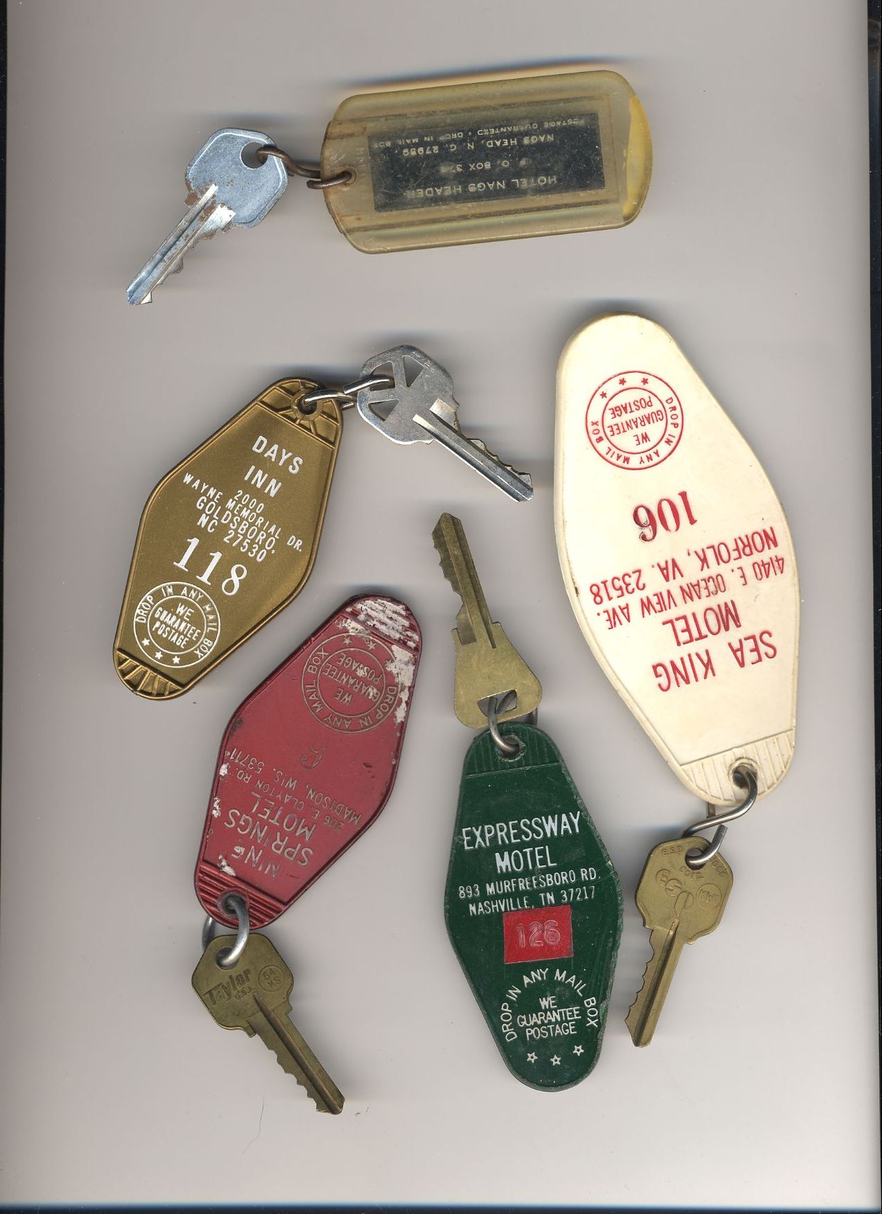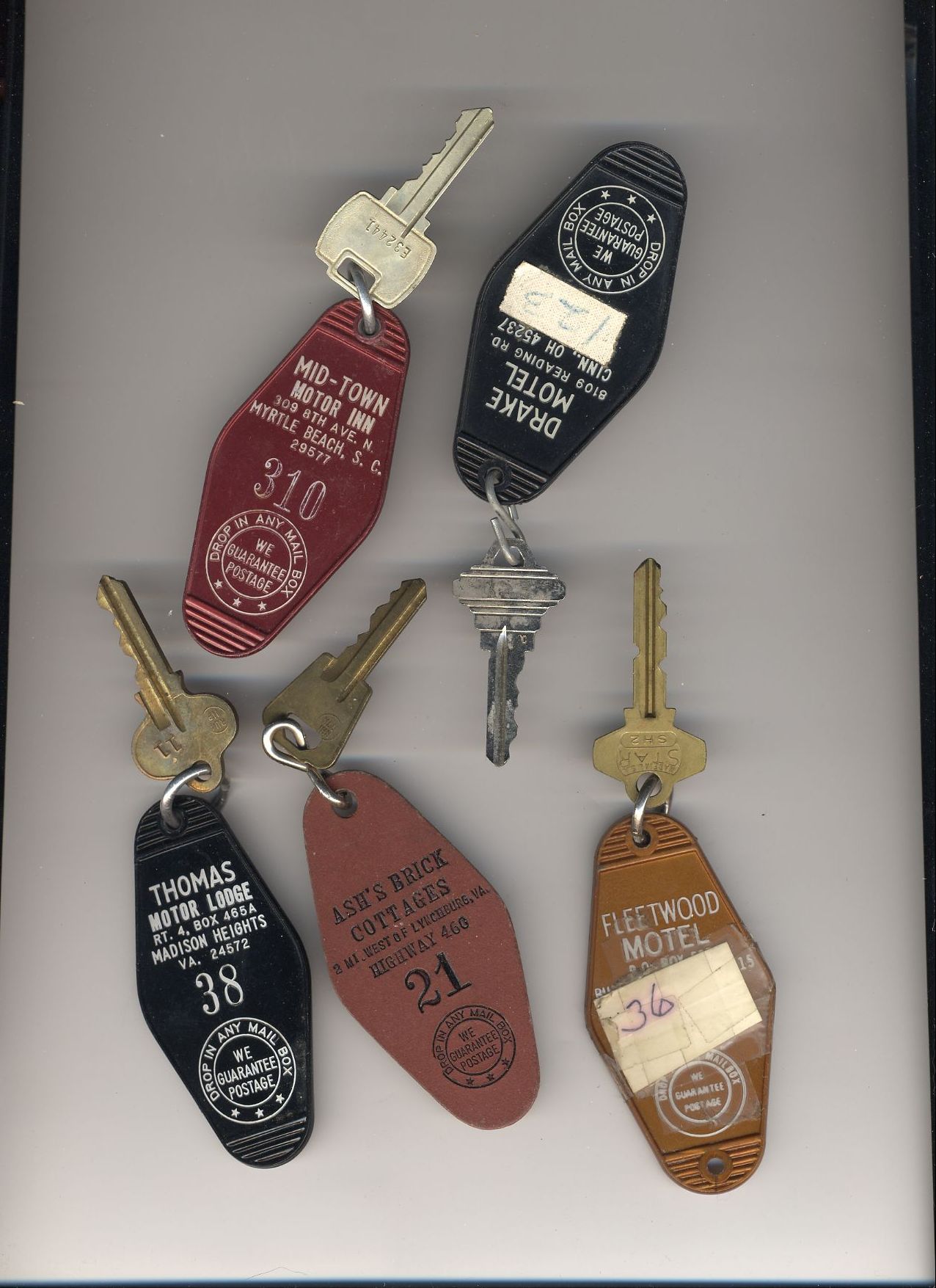 Here's a bunch of room keys from various hotels that phoo walked off with
